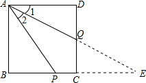 分析:延长AQ交BC的延长线于E,根据四边形ABCD是正方形,得到AD=CD,AD∥BE.再求出△ADQ与△ECQ关于点Q成中心对称,则有AD=CE,∠1=∠E.所以∠2=∠E即∠1=∠2,即可证明AQ平分∠DAP.