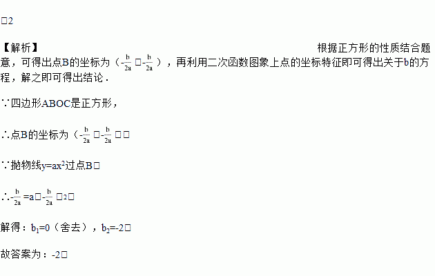 如图,在平面直角坐标系xOy中,已知抛物线y=ax2+bx(a>0)的顶点为C,与x轴的正半轴交于点A,它的对称轴与抛物线y=ax2(a>0)交于点B.若四边形ABOC是正方形,则b的值是_____.