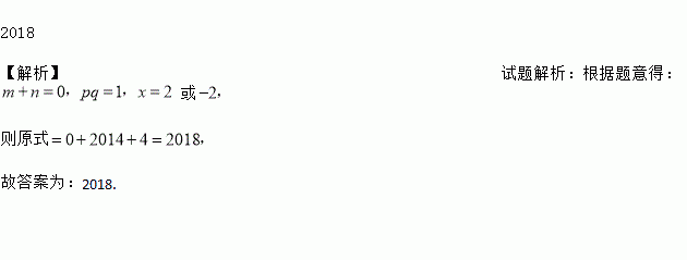 已知,m、n互为相反数,p、q互为倒数,x的绝对值为2,则代数式: 的值为_____.