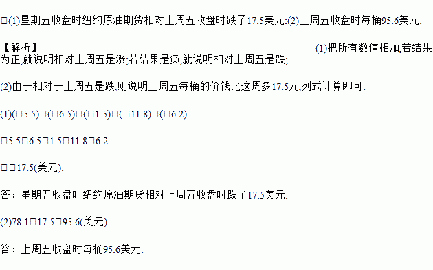 (2)已知本周五收盘时纽约原油期货价格为每桶78.1美元,求上周五收盘时每桶多少美元?