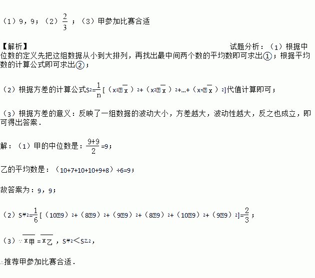 甲 | 10 | 8 | 9 | 8 | 10 | 9 | 9 | ① |