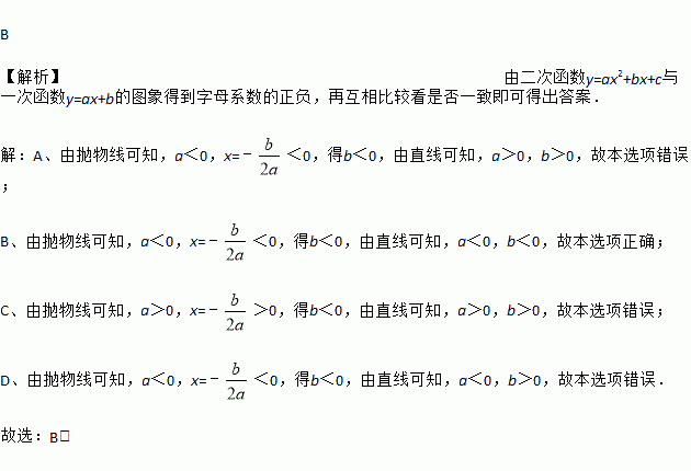 一次函数y=ax+b与二次函数y=ax2+bx+c在同一坐标系中的图象可能是( )