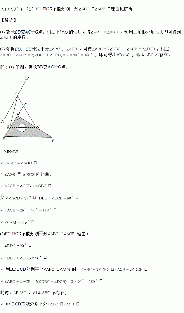 已知将一块直角三角板DEF放置在上,使得该三角板的两条直角边DE,DF恰好分别经过点B、C.