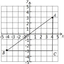 分析:首先根据关于原点对称的点的坐标特点得到a、b的值,进而得到两个点的坐标,然后在坐标系中标出两个点,再利用勾股定理计算出A、B之间的距离.