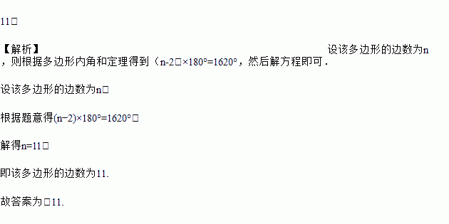 若多边形的内角和为 1620°,则该多边形的边数是_____.