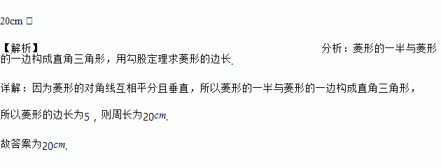 菱形的两条对角线长分别为6cm和8cm,则这个菱形的周长为______.