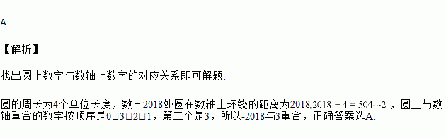 如图,圆的周长为4个单位长度.在该圆的4等分点处分别标上数字0、1、2、3,先让圆周上表示数字0的点与数轴上表示数﹣1的点重合,再将数轴按逆时针方向环绕在该圆上.则数轴上表示数﹣2018的点与圆周上表示数字( )的点重合.