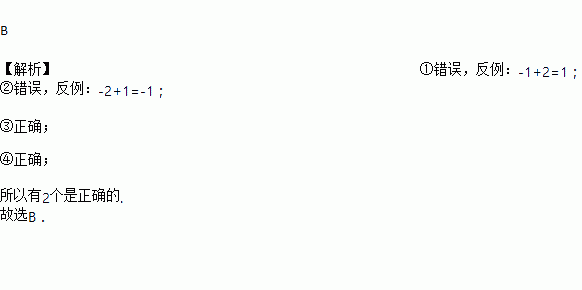 ③两个有理数的和可能等于其中的一个加数;④两个有理数的和可能等于0.