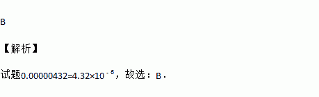 A. 432×10﹣8 B. 4.32×10﹣7 C. 4.32×10﹣6 D. 0.432×10﹣5