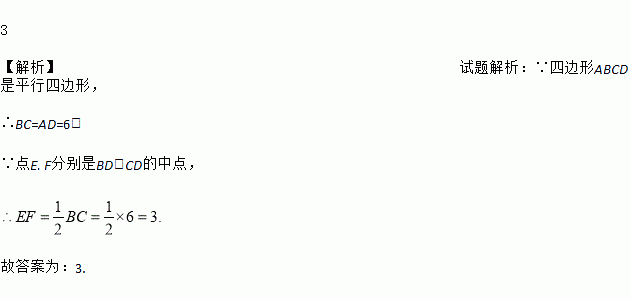 如图,在□ABCD中,AD=6,点E、F分别是BD、CD的中点,则EF=______.