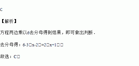 A. 1﹣3(x﹣2)=2(x+1) B. 6﹣2(x﹣2)=3(x+1)