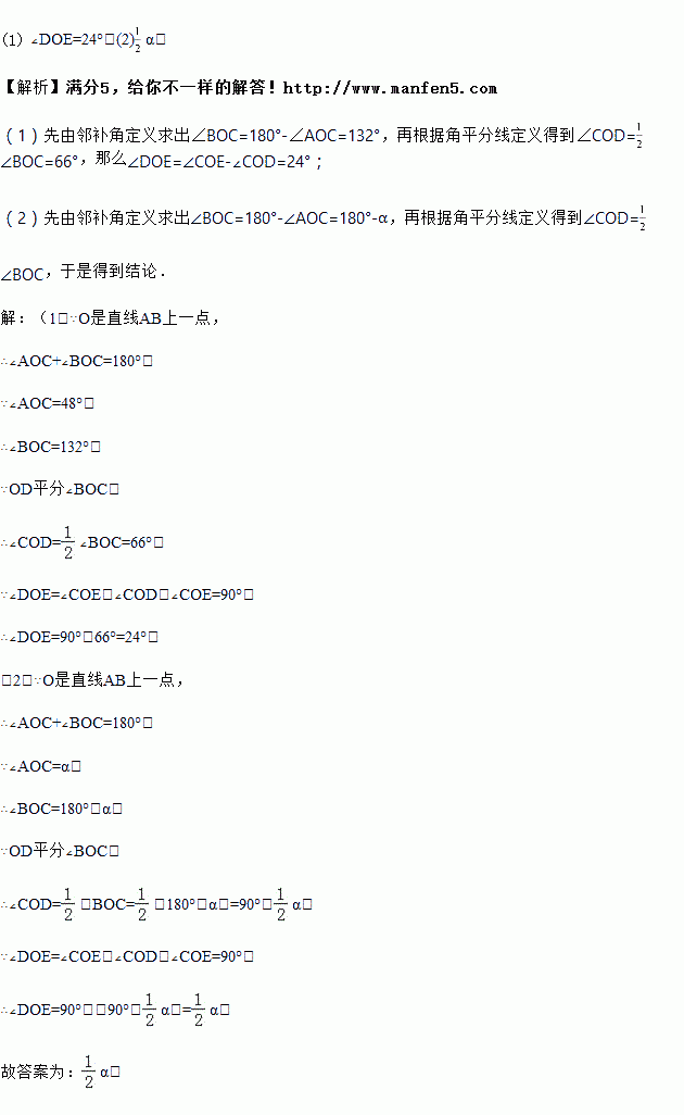 (2)若∠AOC=α,则∠DOE= (用含α的代数式表示).