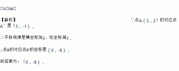 已知线段AB的A点坐标是(3,2),B点坐标是(﹣2,﹣5),将线段AB平移后得到点A的对应点A′的坐标是(5,﹣1),则点B的对应点B′的坐标是________.
