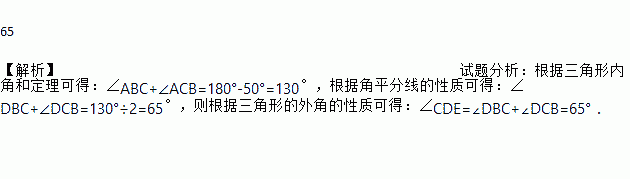已知,如图△ABC中,∠A=50°,BE、CD分别是△ABC、△BCE的角平分线,则∠CDE=__°.