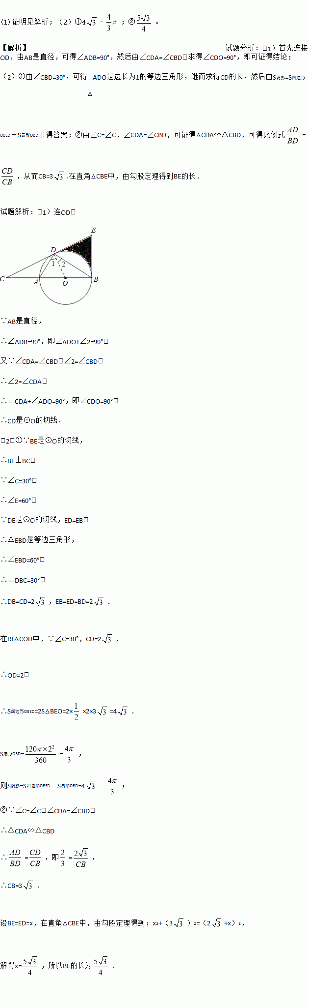 (1)求证:CD是⊙O的切线;