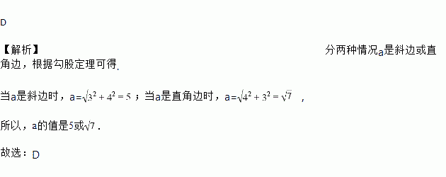 如果直角三角形的边长为3,4,a,则a的值是( )