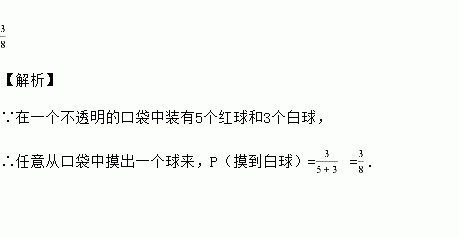 在一个不透明的口袋中装有5个红球和3个白球,他们除颜色外其他完全相同,任意摸出一个球是白球的概率为________.