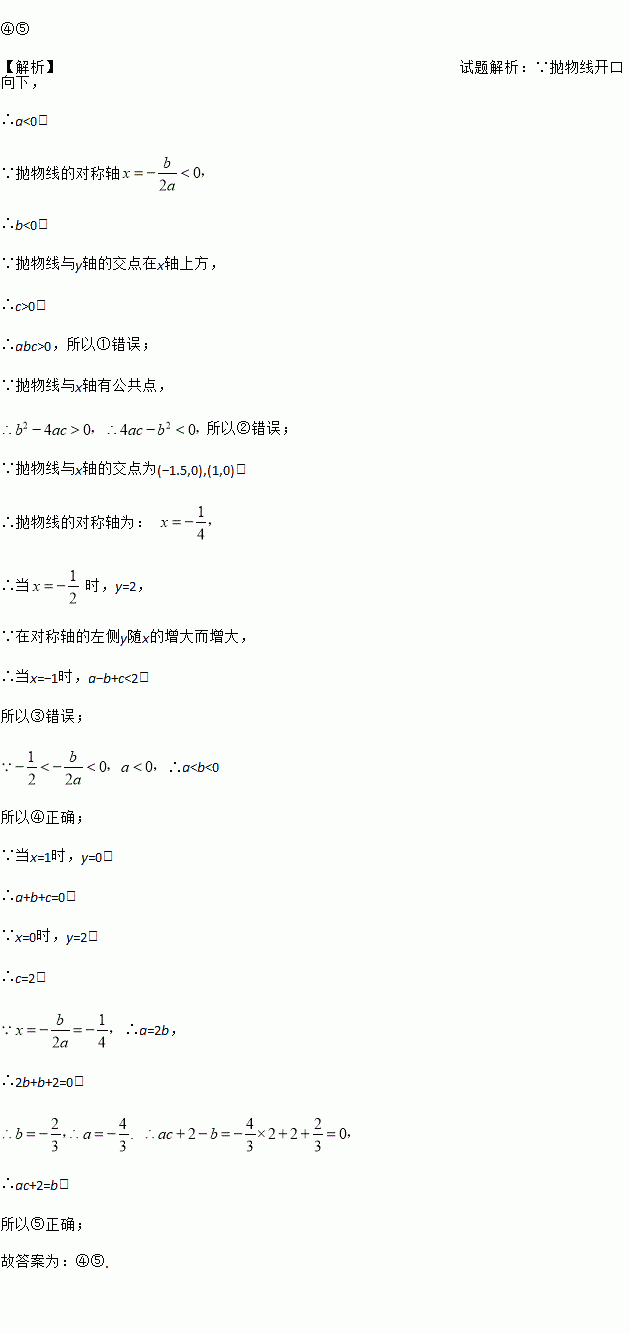 已知二次函数y=ax2+bx+c(a≠0)的图象如图所示,在下列五个结论中: ①abc<0;②4ac﹣b2>0;③a﹣b+c>2;④a<b<0;⑤ac+2=b,