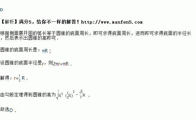 一个圆锥的侧面展开图是半径为的半圆,则该圆锥的高是( )
