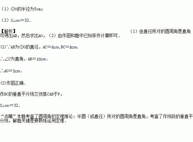 (2)请用尺规作图作出点P,使得点P在优弧CAB上时,△PBC的面积最大,请保留作图痕迹,并求出△PBC面积的最大值.