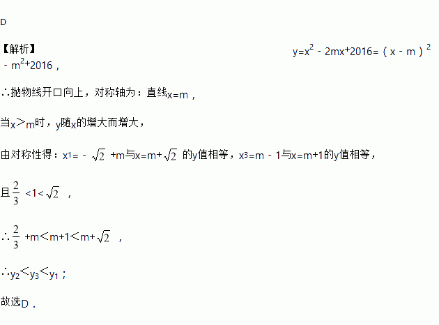已知函数y=x2﹣2mx+2016(m为常数)的图象上有三点:A(x1,y1),B(x2,y2),C(x3,y3),其中x1=﹣