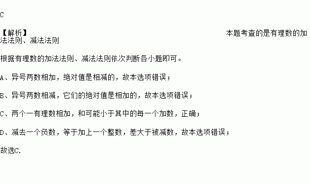 (C)两个有理数相加,和可能小于其中的每一个加数