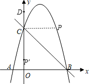 (2)连接CP,CP′,先求出m的值,确定这时P点的坐标为(3,4),再确定点D的坐标,求出∠OCB=45°=∠BCP,从而确定点P′在y轴上,且CP′=CP=3,即可解答.