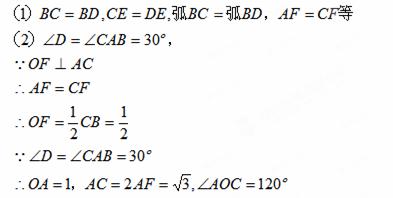 .如图,AB为⊙O的直径,弦CD⊥AB于点E,交⊙O于点D,OF⊥AC于点F.