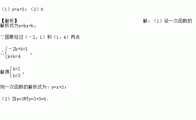 一次函数图象经过(﹣2,1)和(1,4)两点,