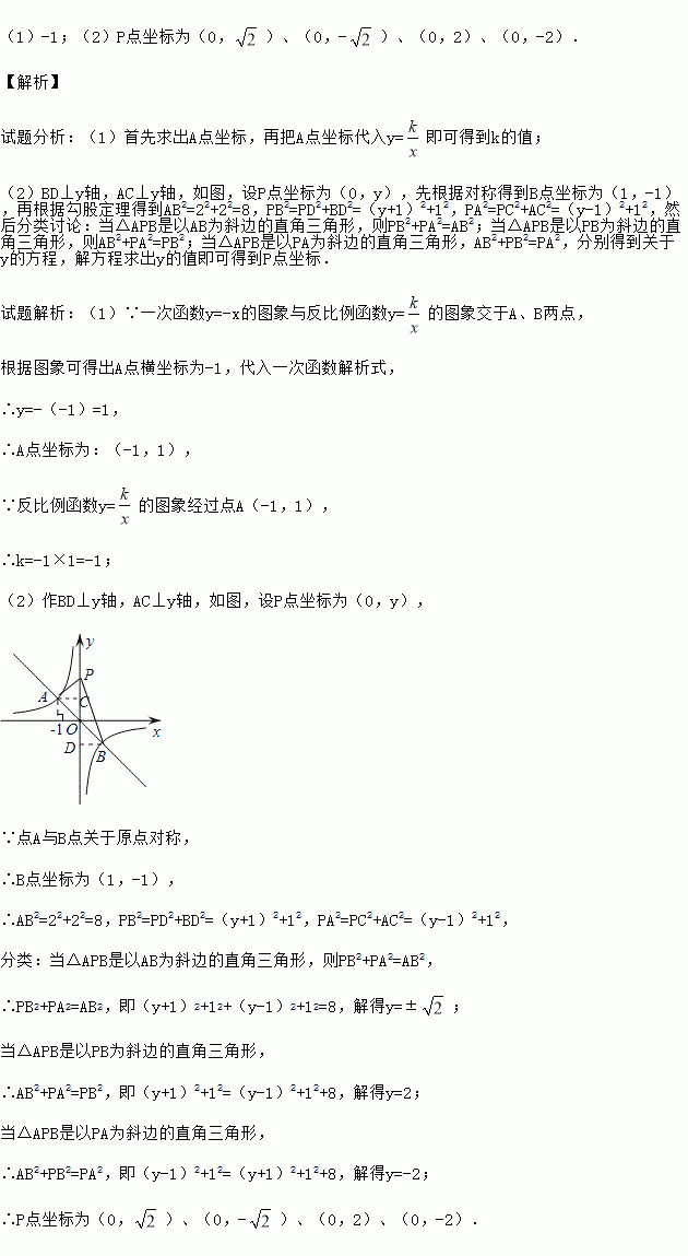 (2)如果点P在y轴上,且满足以点A、B、P为顶点的三角形是直角三角形,直接写出点P的坐标.
