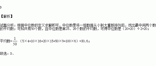 则他们捐款金额的中位数和平均数分别是( )