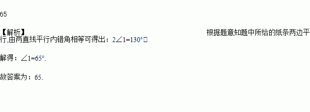 如图,将一个长方形的纸条按如图所示方法折叠一次,则∠1=__________°.