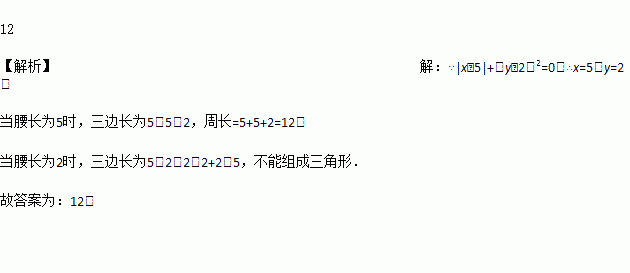 已知等腰三角形的两边长分别为x和y,且x和y满足|x﹣5|+(y﹣2)2=0,则这个等腰三角形的周长为__.