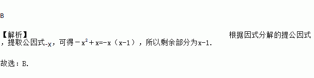 把多项式-x2+x提取公因式-x后,余下的部分是( )
