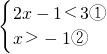 分析:把3x>-6两边除以3即可得到x>-2;把2-x>1进行移项即可得到x<1;先解第一个不等式得到x<2,然后根据大于小的小于大的取中间即可得到不等式组的解集为-1<x<2.