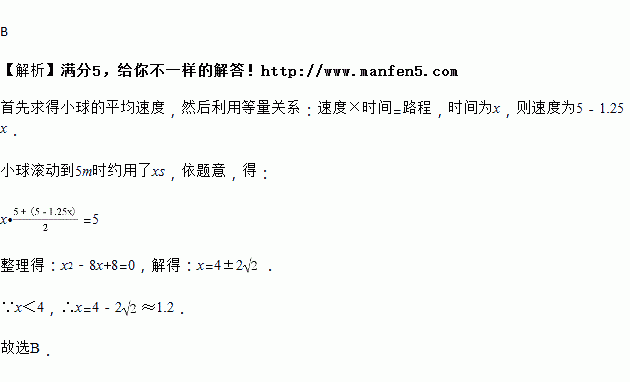 小球以的速度在平坦地面上开始滚动,并且均匀减速,后小球停下来.小球滚动到时约用了多少时间(精确到)?( )