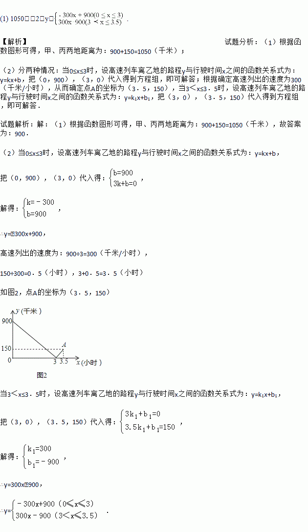 (2)求高速列车离乙地的路程y与行驶时间x之间的函数关系式,并写出x的取值范围.