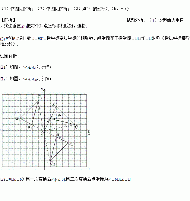 (3)若△ABC内有一点P(a,b),结果上面两次变换后点P在△A2B2C2中的对应点为P′,则点P′的坐标为 .