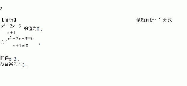 已知若分式的值为0,则x的值为_______________ .
