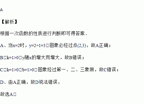 C. 图象经过第一、二、四象限 D. 以上都不对