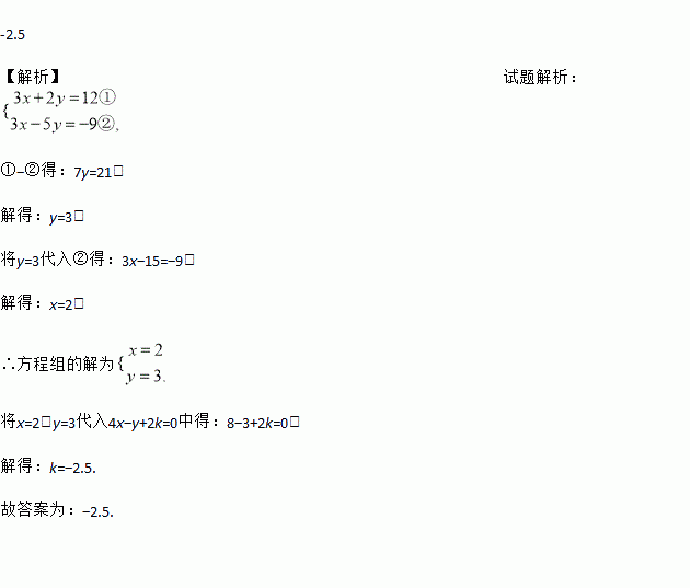 如果方程组 的解也是方程4x﹣y+2k=0的解,则k=________.