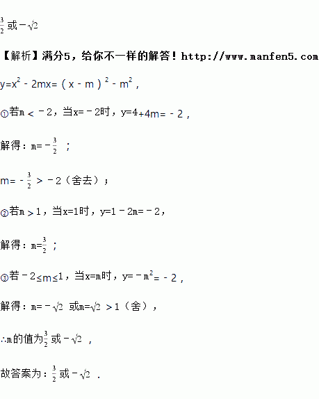 已知二次函数y=x2﹣2mx(m为常数),当﹣2≤x≤1时,函数值y的最小值为﹣2,则m的值为_____.