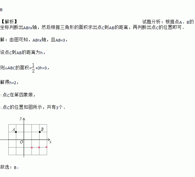 如图,在5×4的方格纸中,每个小正方形边长为1,点O,A,B在方格纸的交点(格点)上,在第四象限内的格点上找点C,使△ABC的面积为3,则这样的点C共有( )