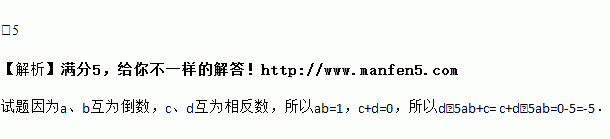 如果a、b互为倒数,c、d互为相反数,那么d﹣5ab+c=_____.