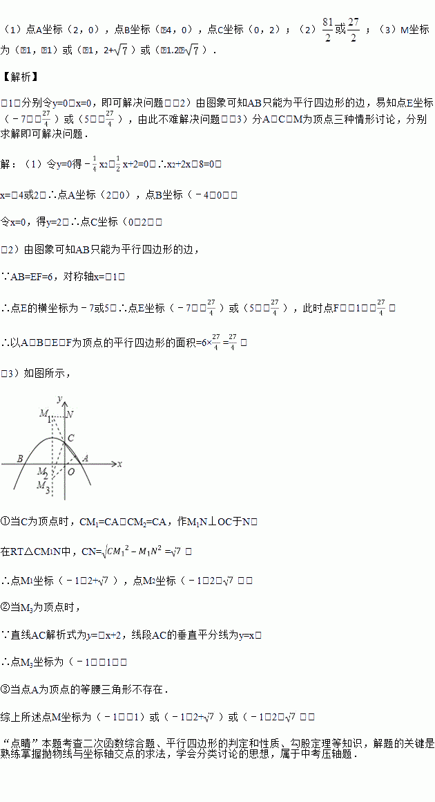 (3)此抛物线的对称轴上是否存在点M,使得△ACM是等腰三角形?若存在,请求出点M的坐标;若不存在,请说明理由.