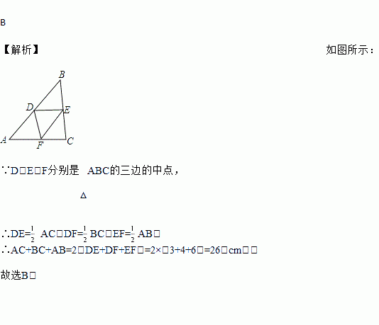 已知三角形的3条中位线分别为3cm、4cm、6cm,则这个三角形的周长是( ).