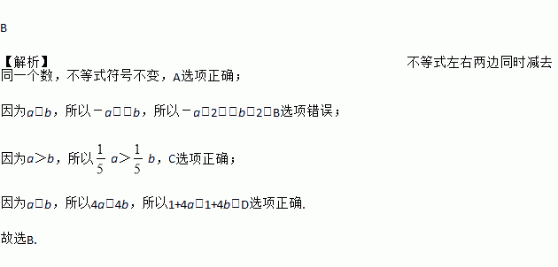 A. a -3> b -3 B. - a +2>- b +2 C. a>b D. 1+4a>1+4b