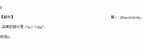 小萌在利用完全平方公式计算一个二项整式的平方时,得到正确结果4x2+20xy+■,不小心把最后一项染黑了,你认为这一项是( )
