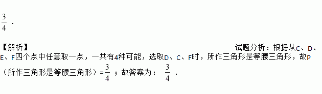 如图,在3×3的方格中,A、B、C、D、E、F分别位于格点上,从C、D、E、F四点中任取一点,与点A、B为顶点作三角形,则所作三角形为等腰三角形的概率是__.