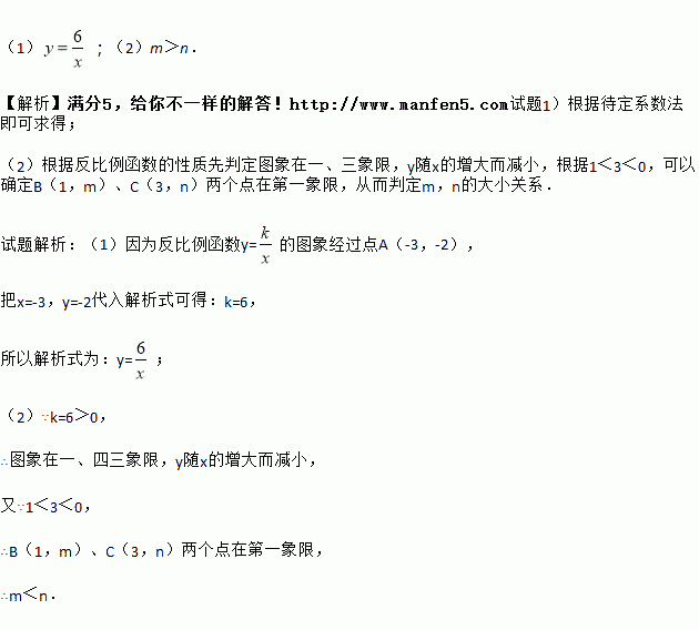 (2)若点B(1,m),C(3,n)在该函数的图象上,试比较m与n的大小.